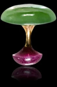 The gems are cabochon cut, which accentuates their natural inner beauty as they catch the light. Be your own designer and combine your favourite top gem with a bar of yellow gold, white gold or silver. Note that the ‘backside’ gemstone is always a small ruby.