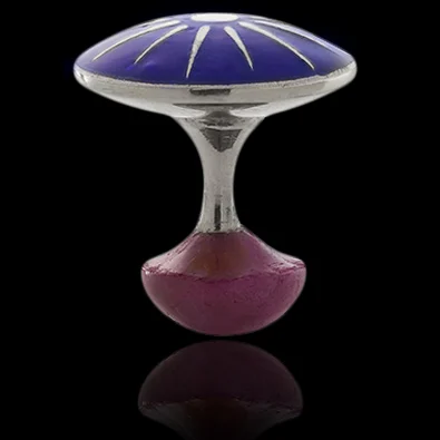 - The top section is made of 14k gold or 925 Sterling silver (approx. 4,8 grams) covered with lapis lazuli, ruby or emerald coloured glass enamel.