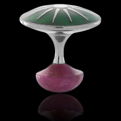 - The top section is made of 14k gold or 925 Sterling silver (approx. 4,8 grams) covered with lapis lazuli, ruby or emerald coloured glass enamel.